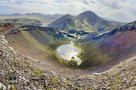 The next day, we will drive the highland road to Eldgjá (Fire Canyon), taking a backroad to Langisjór Lake, close to Vatnajökull Glacier. From there, we will hike to the top of Mt. Sveinstindur and witness the sensational view over the lake and highlands.